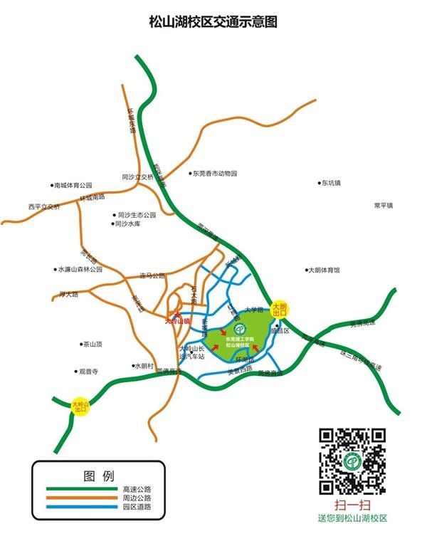 可乘【707路汽车——东坑车站(站外) 公交站,同站换乘309路汽车——松山湖理工体育中心(北门)】