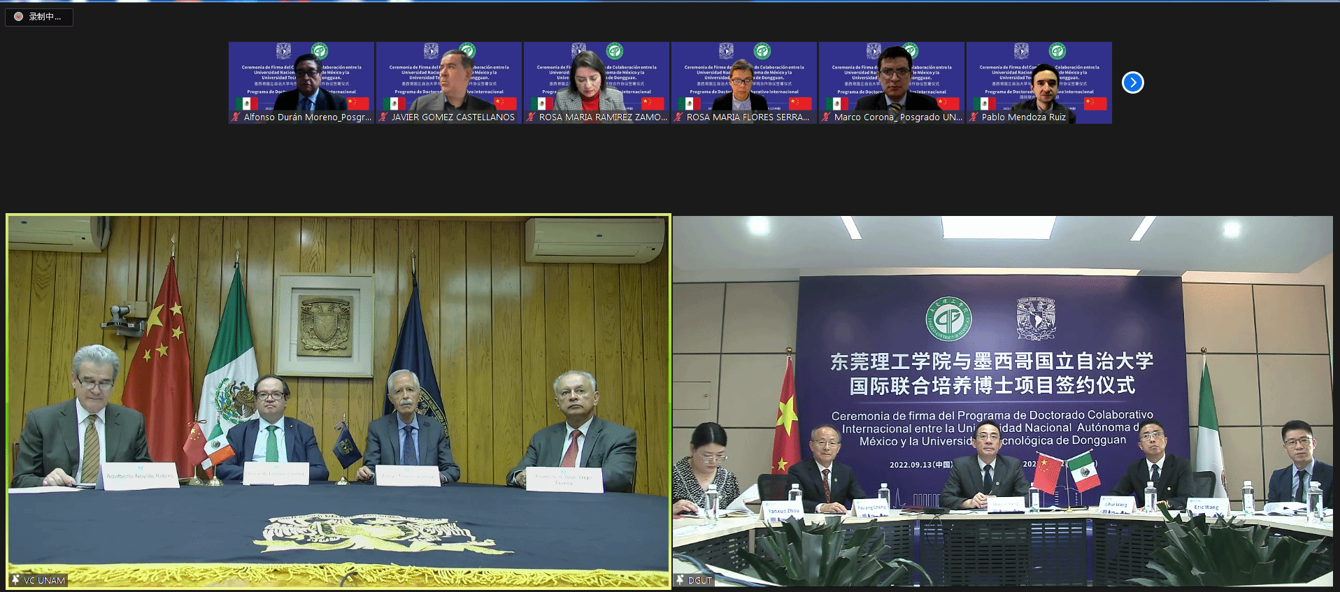 2022年9月13日上午,我校与墨西哥国立自治大学举行国际联合培养博士项目协议线上签署仪式。我校副校长杨敏林与墨西哥国立自治大学秘书长莱昂纳多·洛梅利分别代表两校签约。我校研究生处处长程发良、国际合作与交流处处长王际辉及相关工作人员,墨西哥国立自治大学研究生院院长曼努埃尔·托雷斯、外事处处长弗朗西斯科·特里戈及相关项目负责人等共同见证了签约仪式。