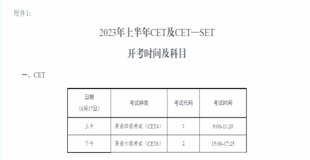 根据粤考院函〔202354号精神,2023年上半年广东省全国大学英语四、六级考试笔试(以下简称CET)和口试(以下简称CET-SET)报名工作即将开始,现将相关事项通知如下: