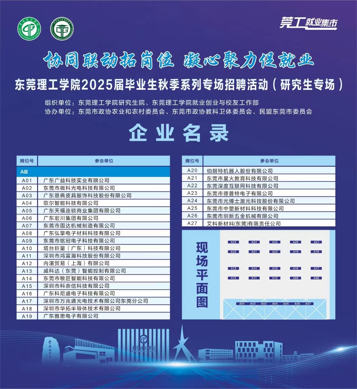此次招聘会得到东莞市政协农业和农村委员会、东莞市政协教科卫体委员会、民盟东莞市委员会的大力支持,相关委员积极动员企业参与,上市集团企业广东宏川集团有限公司、歌尔智能科技有限公司、东莞市微科光电科技有限公司,专精特新企业东莞市固达机械制造有限公司、伯朗特机器人股份有限公司以及本土知名企业广东天福连锁商业集团有限公司、广东雅思电子有限公司等近30家企业到场,岗位需求逾600个,毕业研究生们投递简历超800份。