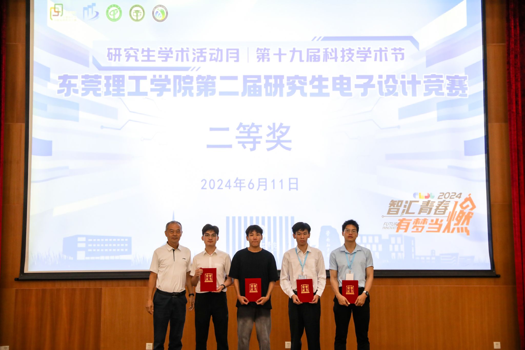 (广东工业大学吴黎明教授为二等奖获奖团体颁奖)
