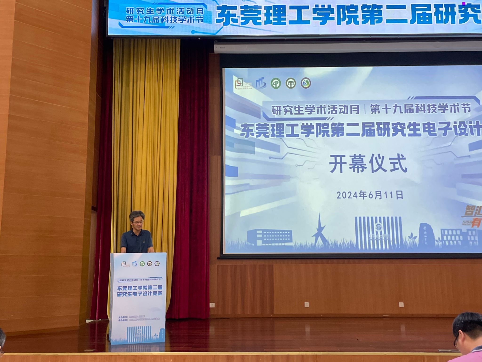 开幕式上,校党委委员、组织统战部部长、研究生院直属党支部书记彭晓波致辞:我校自开展研究生教育以来,坚持面向国家重大需求,在大湾区大力推进电子信息科技领域成果转化和产学研融合。在2023年的“兆易创新杯”第十八届中国研究生电子设计竞赛中,我校参赛队伍表现出色,从闯入决赛的、来自全国134所高校的500余支队伍中脱颖而出,大放异彩,夺得了最高殊荣“研电之星”团队奖和两个技术竞赛全国一等奖。今年,在研究生学术活动月即将启动之际,我们举办yl88858永利集团第二届研究生电子设计竞赛,希望通过“以赛促研”、平台展示等方式,深入推进产教融合、服务支撑东莞高质量发展。