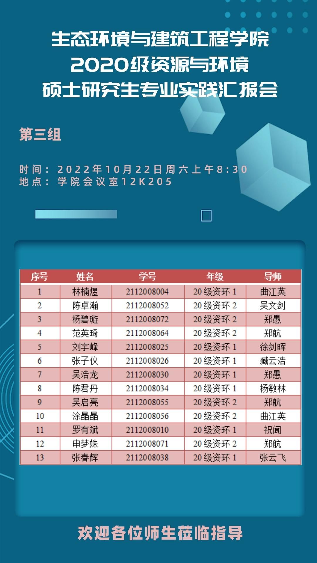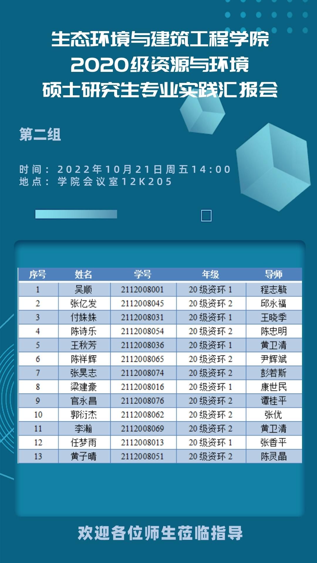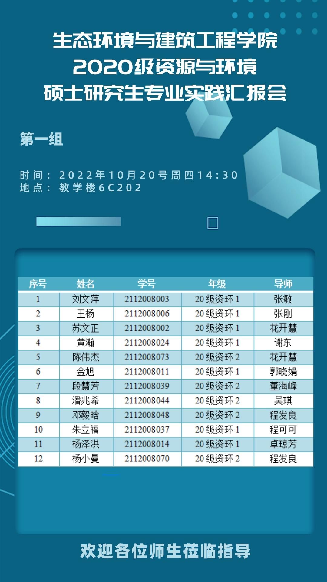 [公告]生态环境与建筑工程学院2020级资源与环境硕士研究生专业实践汇报会