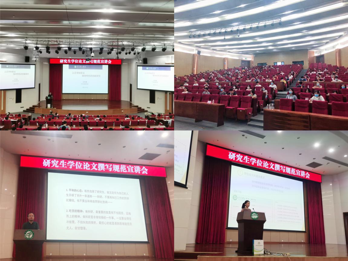 会上,王红成教授为研究生作了“立足学科前沿,做有特色的创新研究”为主题的讲座,对研究生如何发表科研论文、如何进行论文的写作和投稿等进行了讲解,强调了论文投稿的注意事项,分享了论文投稿技巧。研究生处胡旖冉博士从学位论文的基本要求、一般格式、写作中的常见问题和打印报送等方面,对研究生学位论文撰写规范进行了解读,并对我校研究生学位论文格式模板和写作指南进行了详细说明。
