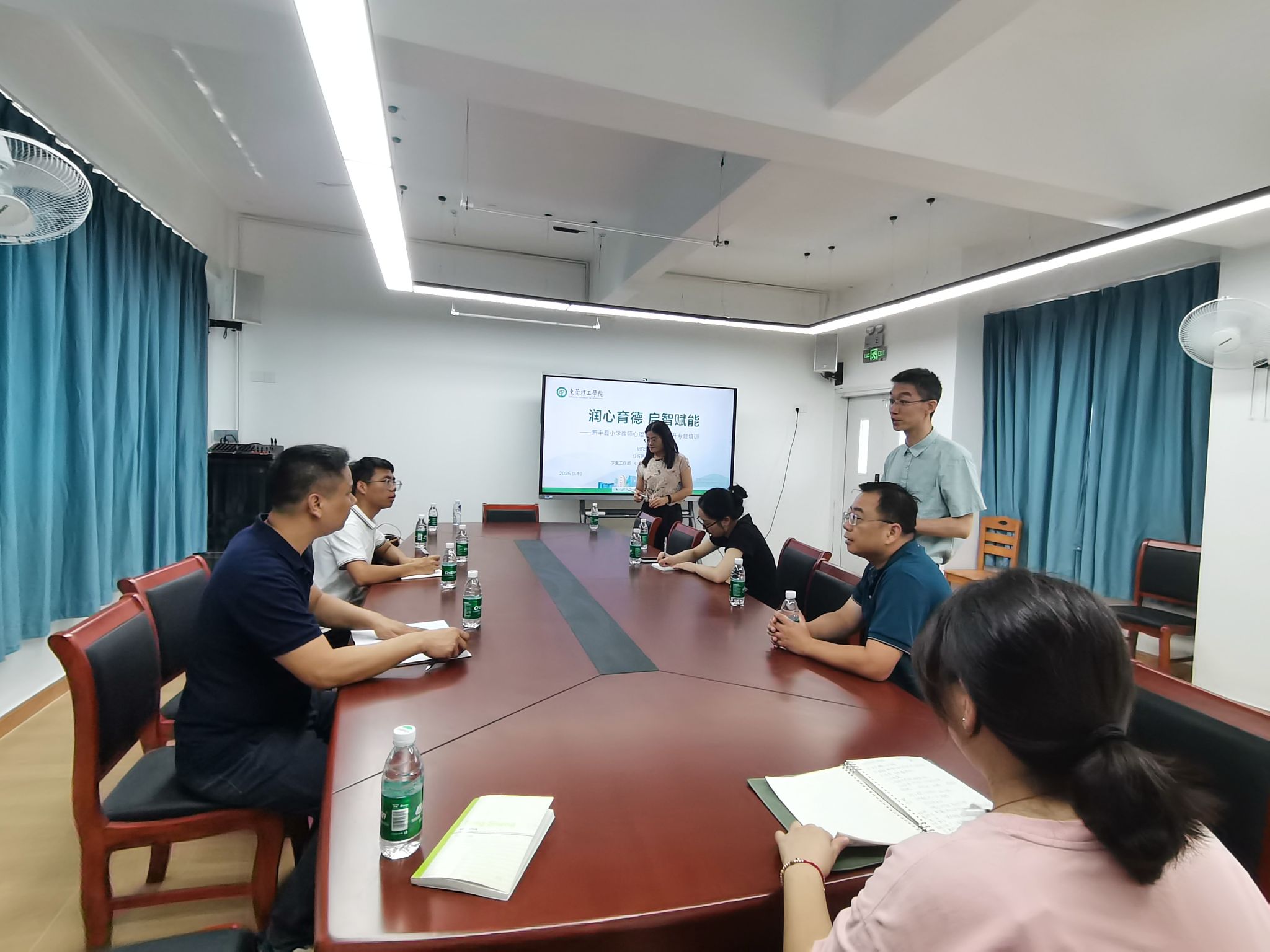 在交流环节中,新丰县茶江村中心小学的温校长和教师们踊跃提问,围绕“留守儿童安全感培养”、“逆反心理学生的正向引导”等实际工作中的困惑展开热烈讨论。滕爱聪博士逐一耐心解答,并与教师们共同梳理解决方案,现场氛围浓厚而温馨。参与教师纷纷表示,此次交流“干货满满”,既更新了心理健康教育理念,又掌握了可直接应用于教学实践的方法,将把所学运用到日常工作中,更好守护孩子们的身心健康。