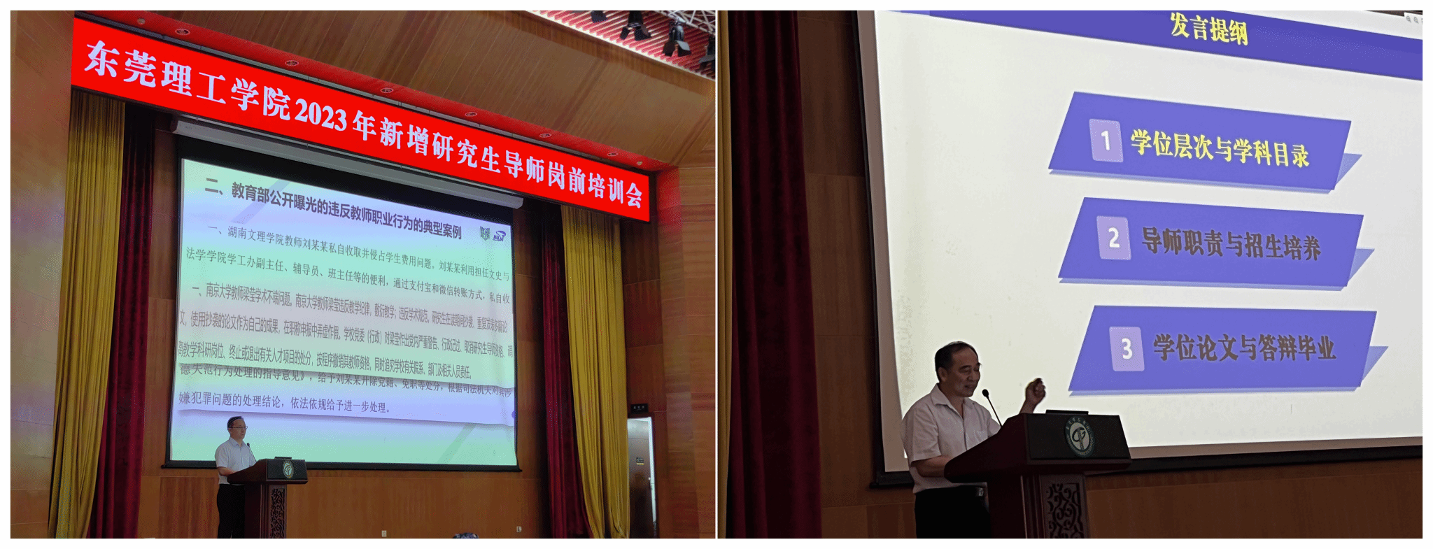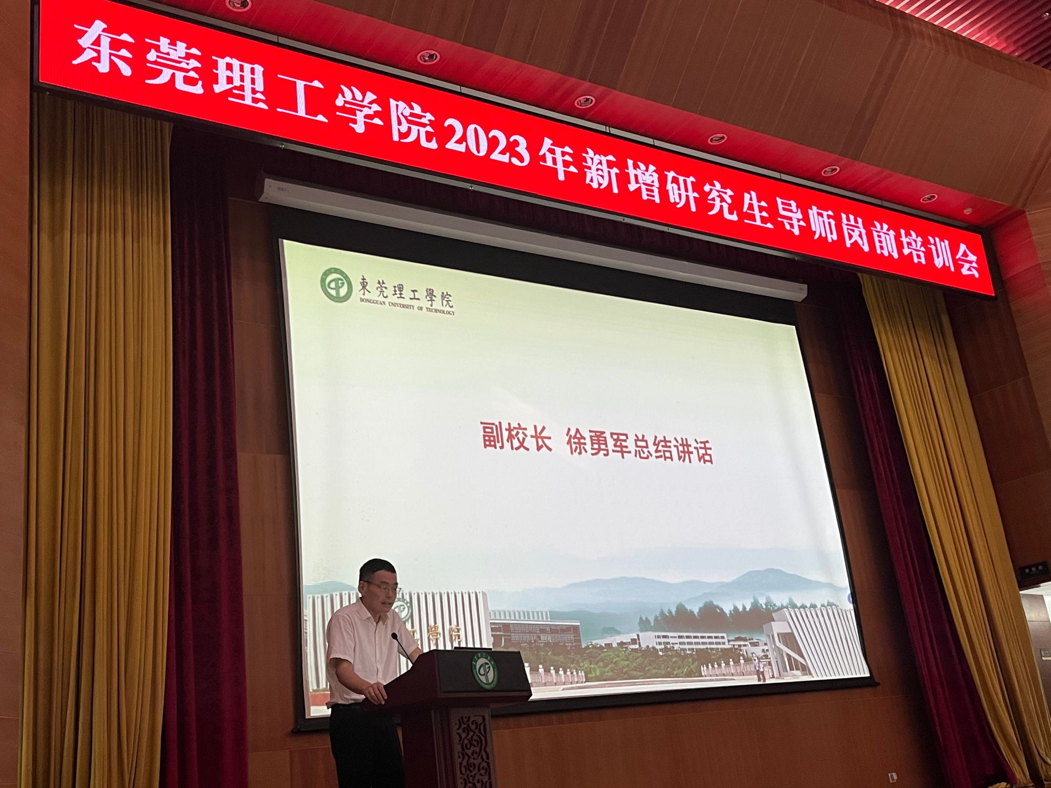 为深入学习贯彻落实习近平总书记对研究生教育工作的重要指示、全面落实研究生导师立德树人职责,加强研究生导师队伍建设,提高导师指导和培养研究生的能力,切实保障研究生培养质量,促进学校研究生教育事业的可持续发展。9月21日下午,学校在松山湖校区学术会议中心多功能厅举办“yl88858永利集团2023年新增硕士生导师岗前培训会”。副校长徐勇军教授出席了培训会,华中科技大学彭湃教授、广东工业大学丁毅强研究员受邀前来作专题辅导报告,近140名我校今年新增硕士研究生导师参加了培训。培训会由研究生院执行院长程发良教授主持。