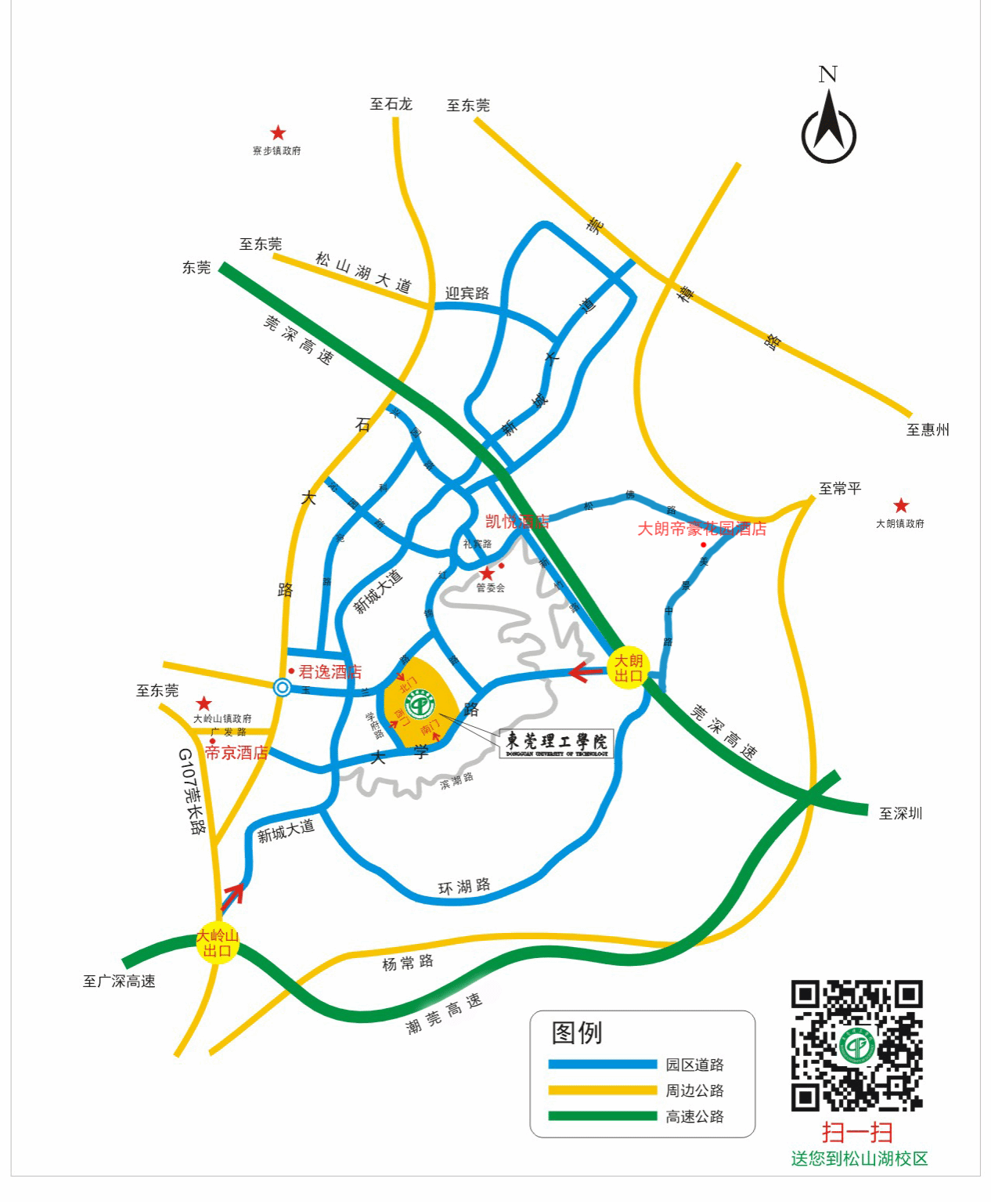 3.经莞深高速,从大朗出口下,进入松山湖大学路到达yl88858永利集团。