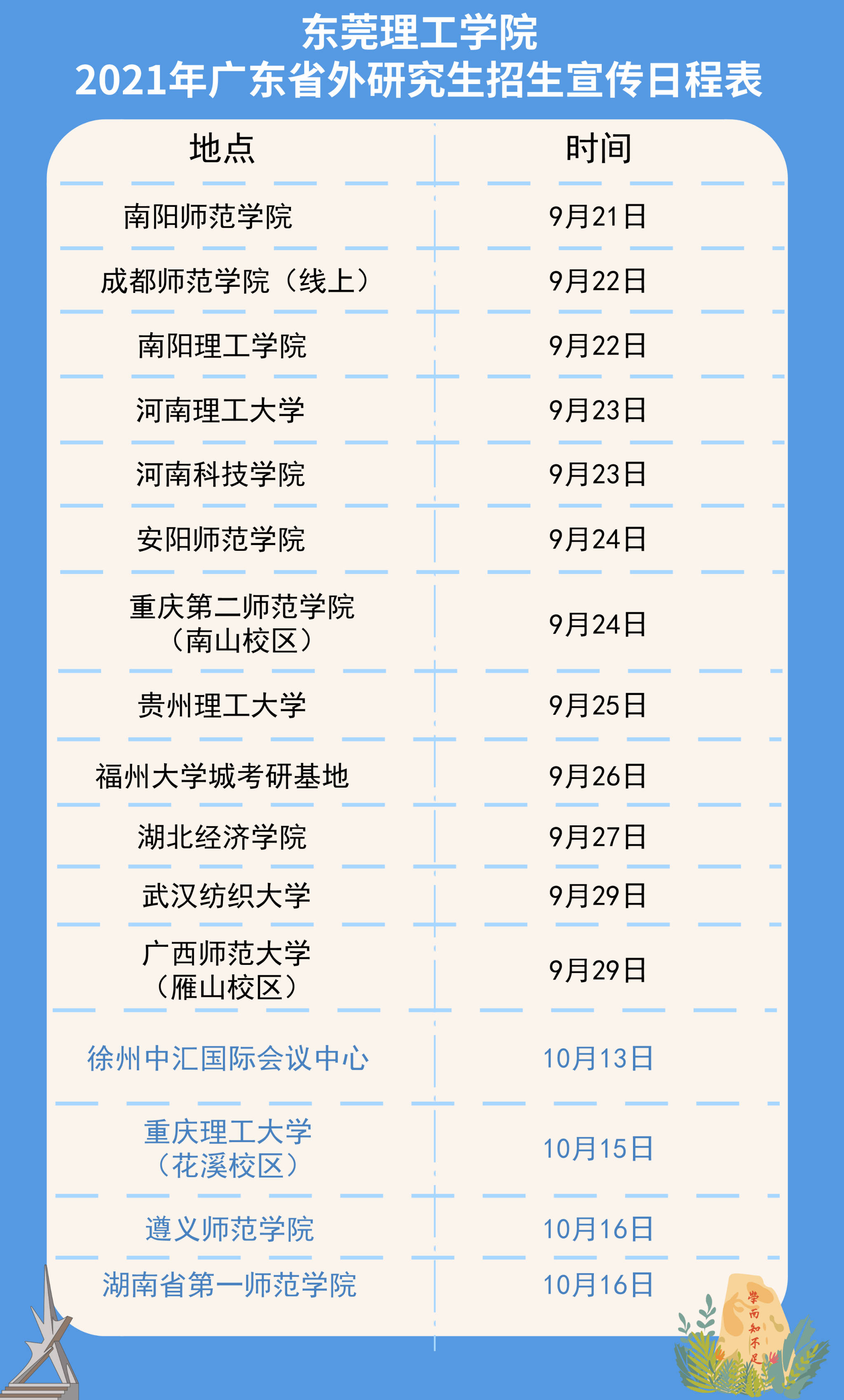 根据教育部相关工作安排,2021年研究生考试网上报名时间为1010日至1031日,每天9:00-22:00。网上预报名时间为924日至927日,每天9:00-22:00。随着研招报名工作的推进,我校进一步在全国范围内全面深入开展线下招生宣传工作。在广东省内,招生宣传队伍先后前往广东财经大学、广东金融学院、五邑大学等多所兄弟院校开展研究生招生宣讲会。在广东省外,分赴到河南、贵州、重庆、湖北、广西等省(区、市)多所高校开展研招专场宣讲会及研究生招生咨询会。